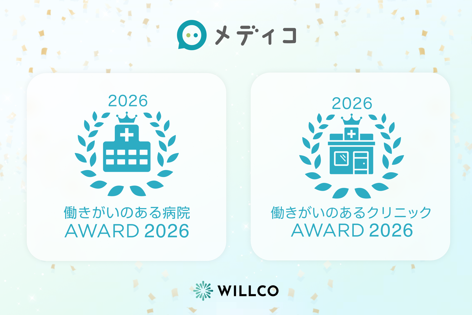 すべての『働く』をしあわせに。」をビジョンに掲げ、専門職のキャリア支援サービスを展開する株式会社WILLCO(所在地:東京都港区、代表者:土屋 佳大)は、2026年4月、医療介護の職場口コミ・求人サイト「メディコ」において、医療従事者の口コミデータをもとに、職場環境や働きやすさの観点から評価の高い医療機関を選出する「働きがいのある病院AWARD 2026」、「働きがいのあるクリニックAWARD 2026」を公開したことをお知らせします。