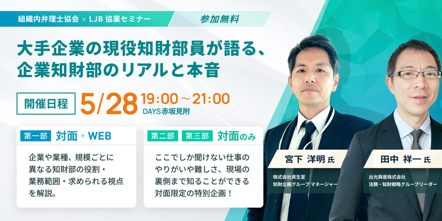 「組織内弁理士協会 × LEGAL JOB BOARD」協業セミナーの第3弾を開催します。